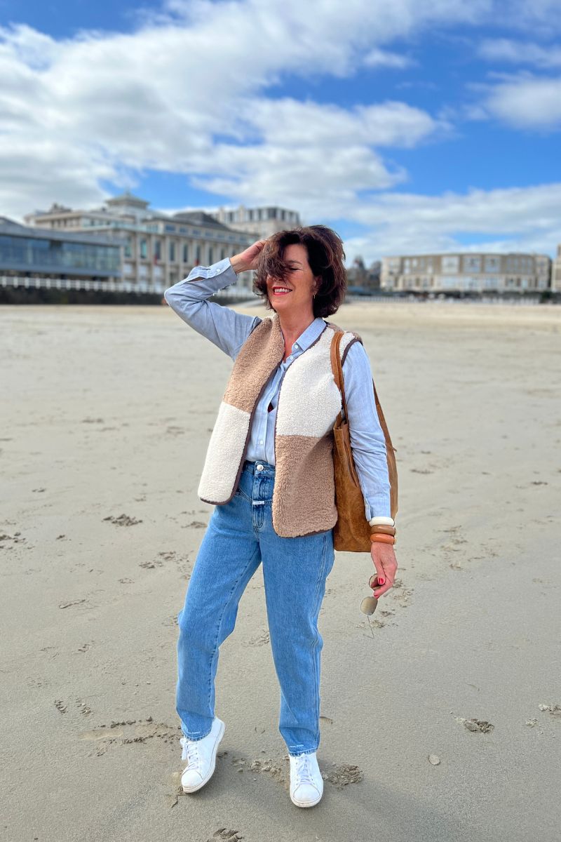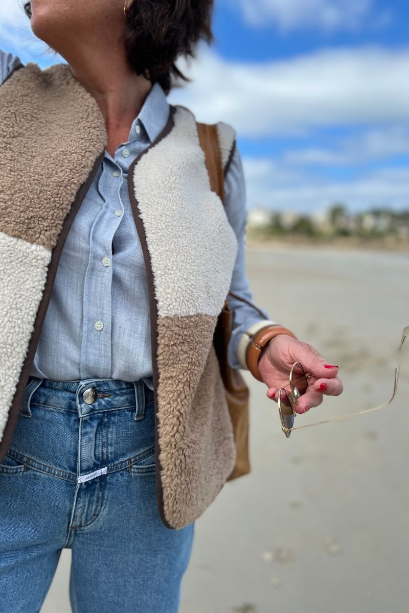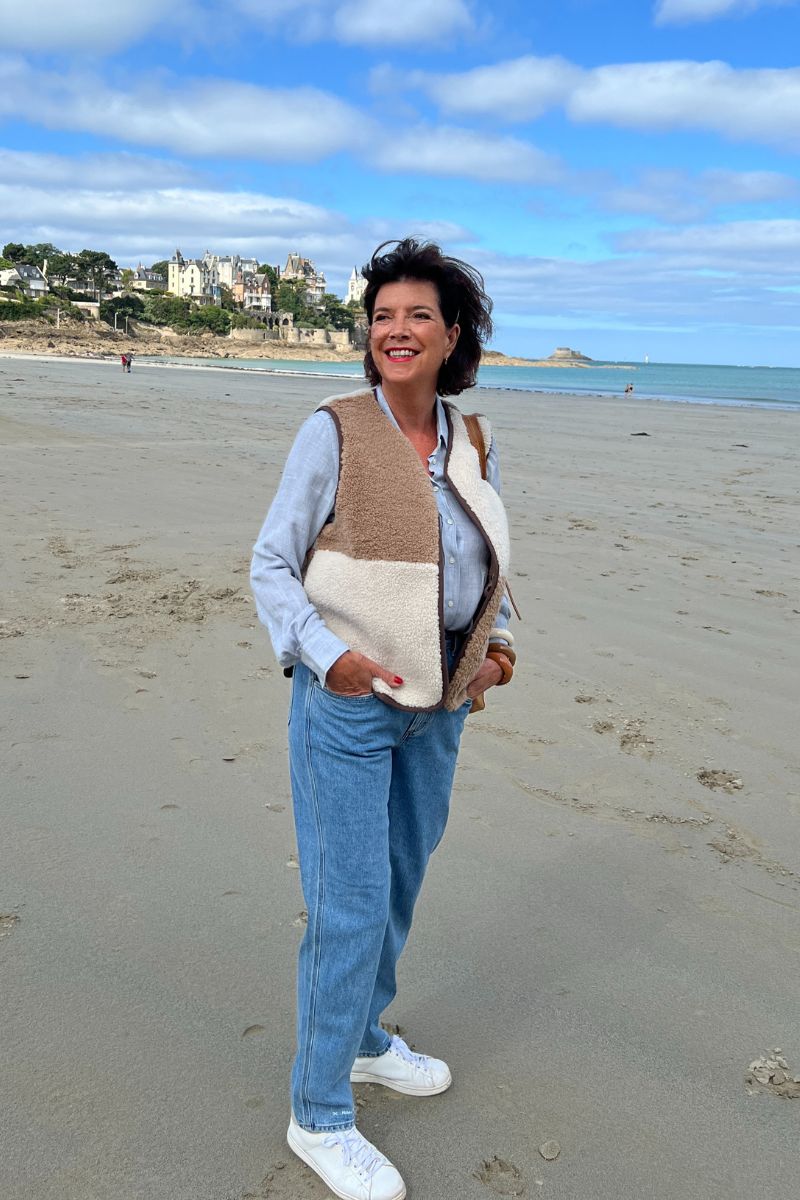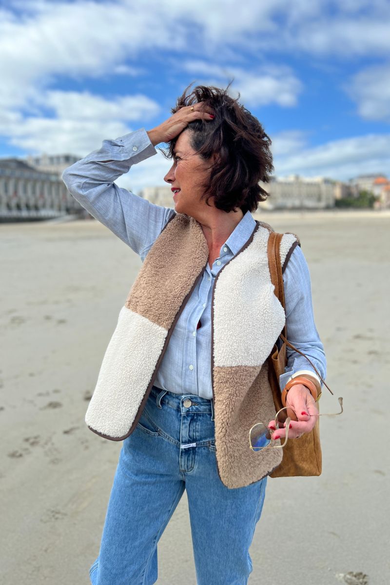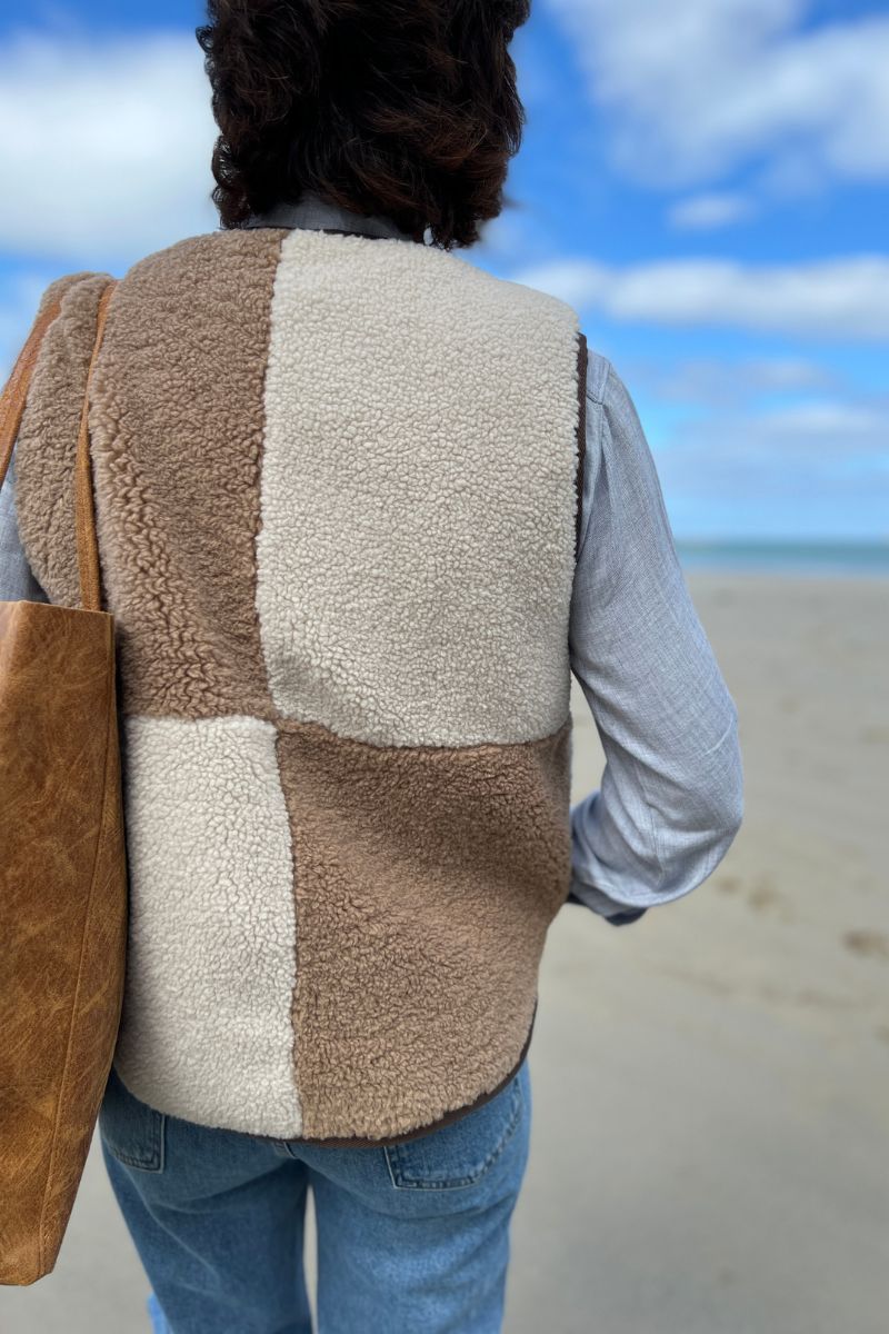 Pour donner du relief à l’ensemble, la veste sans manches patchwork Hartford apporte une note chaleureuse et originale. Ses teintes naturelles et douces en font une pièce phare de la saison, parfaite pour accompagner les premiers jours d’automne.