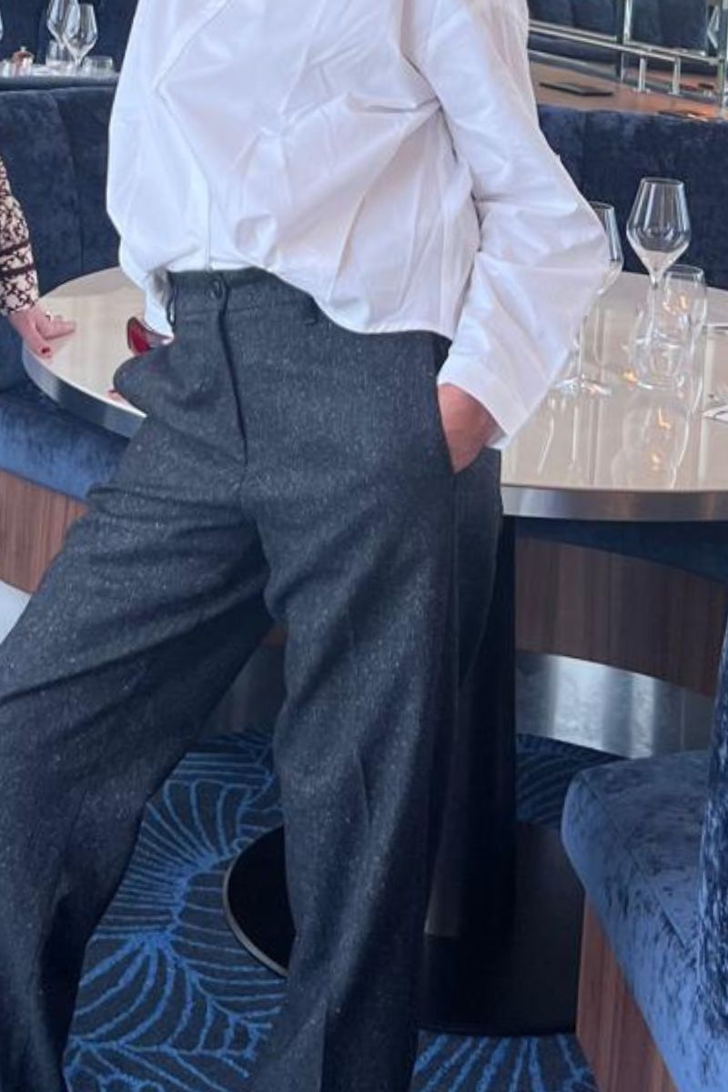 Le pantalon flanelle Gardeur, à la coupe fluide et structurée, allonge la silhouette tout en offrant une grande liberté de mouvement. Associé à la chemise blanche Yaya, intemporelle et parfaitement coupée, l’ensemble compose une base sobre et puissante, facile à accessoiriser.
