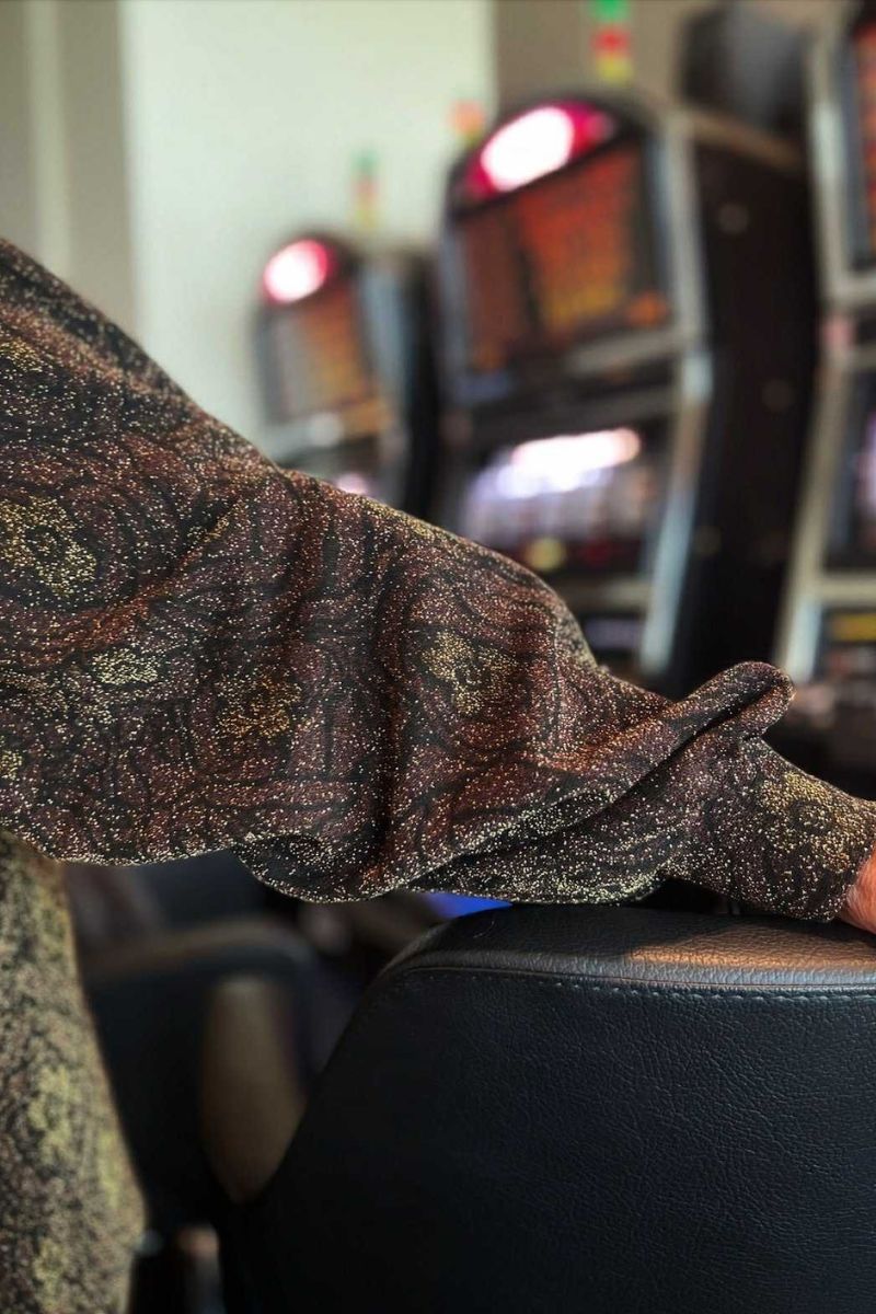 Shootée dans l’atmosphère feutrée et presque féerique du Casino Barrière de Dinard, cette silhouette se déploie au cœur des machines de jeu iconiques, sublimée par d’immenses lustres qui habillent le lieu d’une lumière spectaculaire.