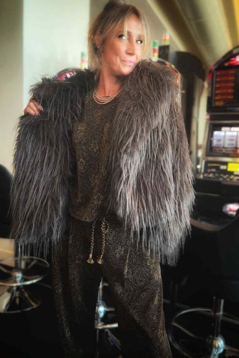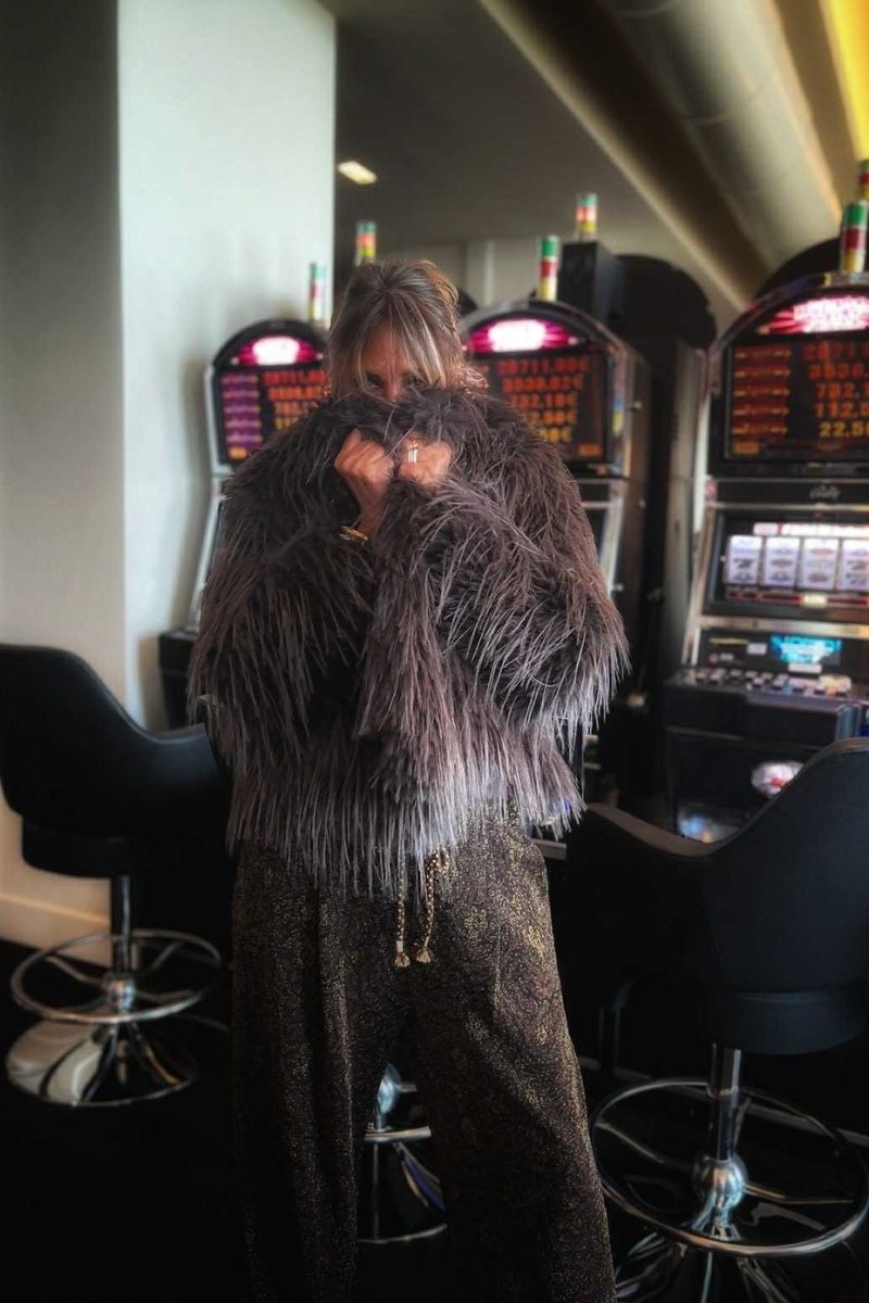 Le blouson en fausse fourrure renforce le caractère chic et original du look.