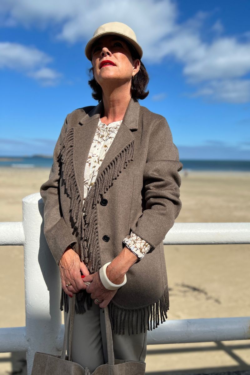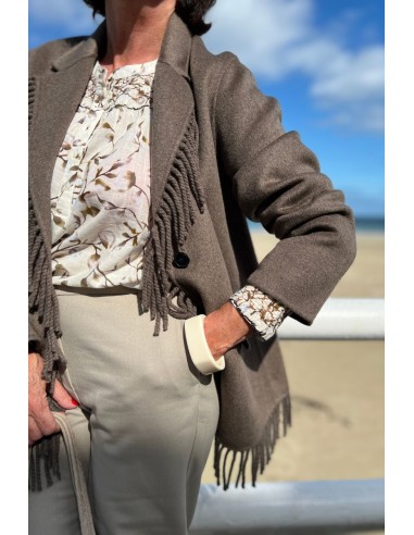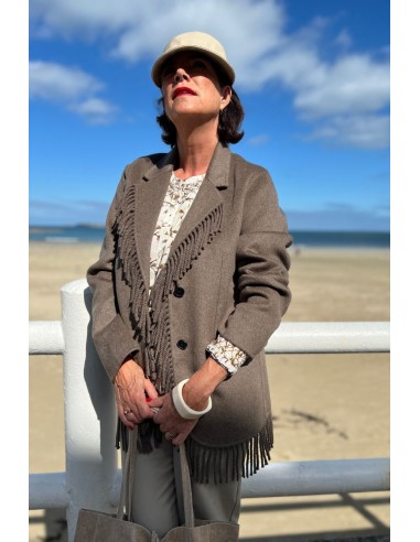 La veste Vermont signée Hartford revisite le blazer classique dans un esprit plus libre et contemporain. Confectionnée en laine double face, elle se distingue par ses détails de franges qui apportent une touche originale au modèle. Sa coupe droite est fermée par trois boutons et structurée par deux poches à rabat. Une pièce forte, facile à associer, qui mixe élégance et caractère.