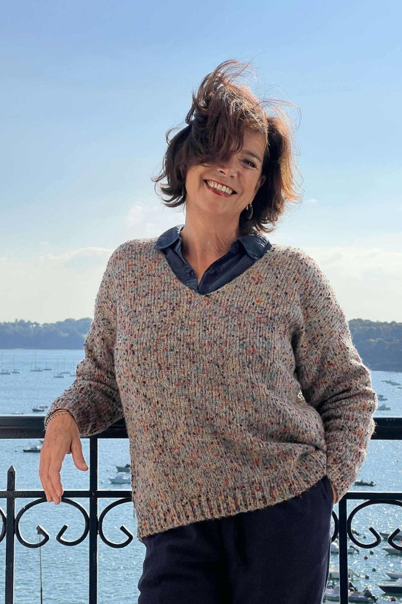Pull White Stuff avec fils multicolores façon confettis.