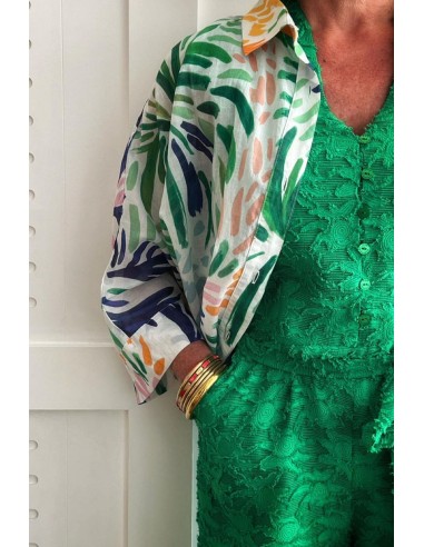 La chemise Sacré Cœur se distingue par son imprimé artistique et ses couleurs vibrantes. Fluide et légère, elle accompagne le mouvement et transforme instantanément une tenue en lui apportant une dimension créative.