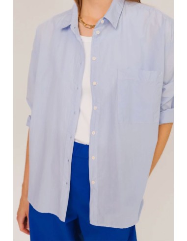 Chemise unie à manches longues en popeline de coton. Coupe loose avec pli dans le dos pour une allure ample et décontractée. Poche poitrine plaquée, col classique et boutonnage apparent. Patte capucin et poignets boutonnés en finition pour une touche de modernité.