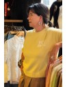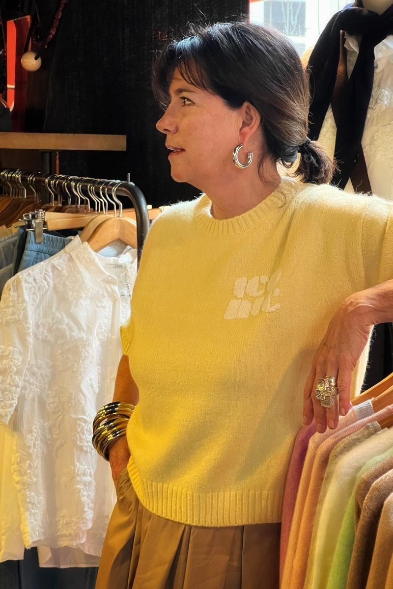 Sa teinte lumineuse réveille les tons neutres et accompagne parfaitement les premières silhouettes de printemps. À porter seul ou sous une veste pour jouer les superpositions.