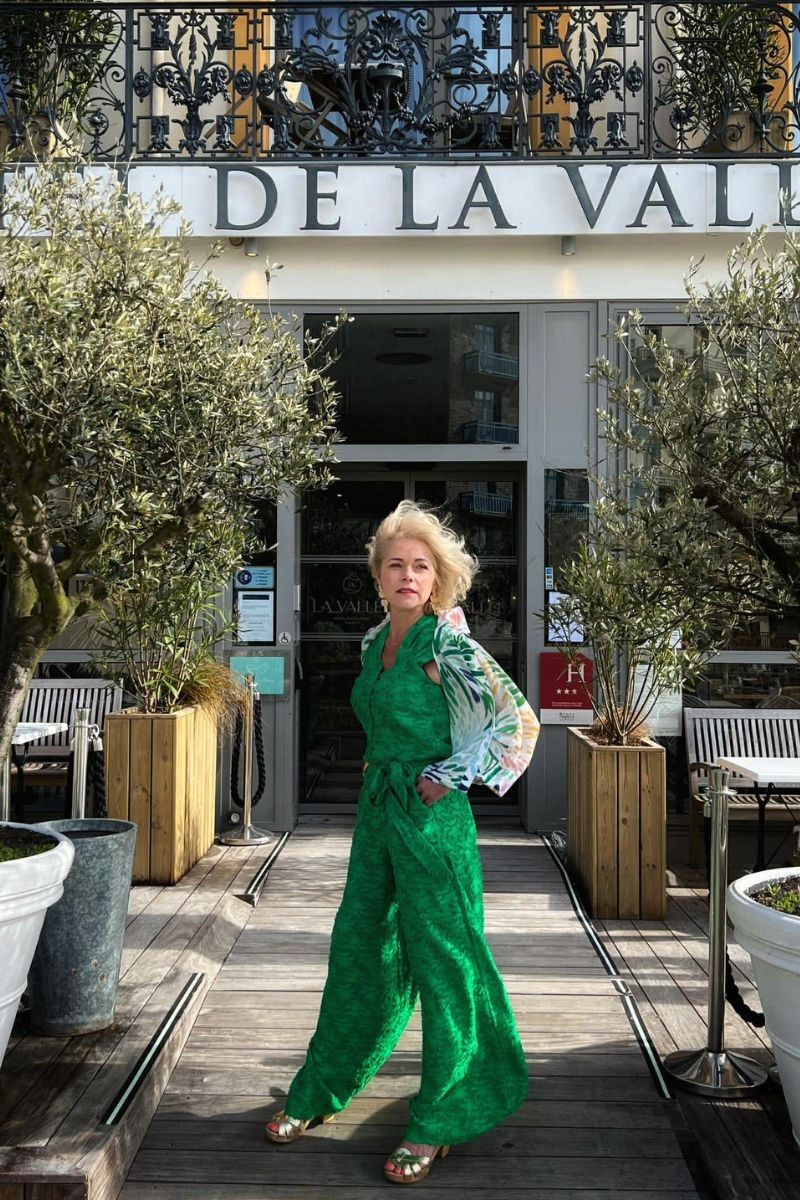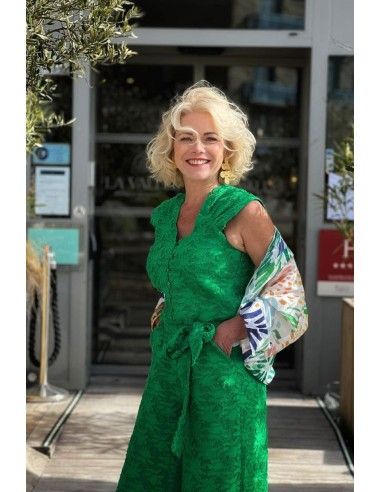 Signée POM, cette combinaison séduit par sa coupe fluide et son vert intense, véritable signature de la saison. Elle allonge la ligne, structure la silhouette tout en offrant un confort absolu.